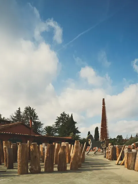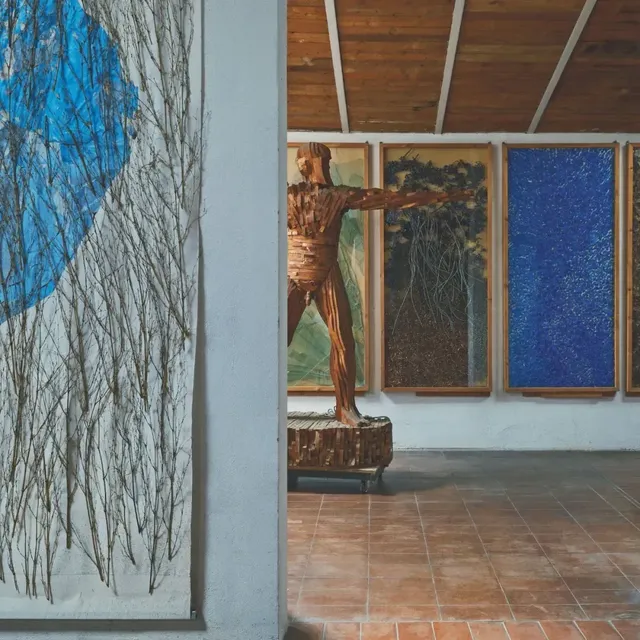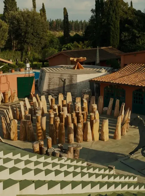 This legendary, sprawling space is a manor Ceroli purchased in the 1960s. Its historic masonry buildings fulfilled nearly all his needs—spacious, open, and adaptable. Coincidentally, while clearing the garden, he discovered a section of red cedar wood over a thousand years old, providing him with invaluable material for his woodcarvings. Entering the garden from the fields on one side of the manor, visitors are greeted not by trees, but by seemingly natural sculptures. Ceroli made full use of the undulating terrain, using stepped artificial platforms to provide a geometric backdrop for his works Albero della vita (Tree of Life) and a horse-shaped woodcarving. In the open space in front of the steps, the large installation Malalingua creates a profound play of light and shadow through an array of wooden pillars, embodying an irregular, formless spirit of freedom.